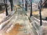 2013Een weg in het laatste zonlicht van een winterse dag.